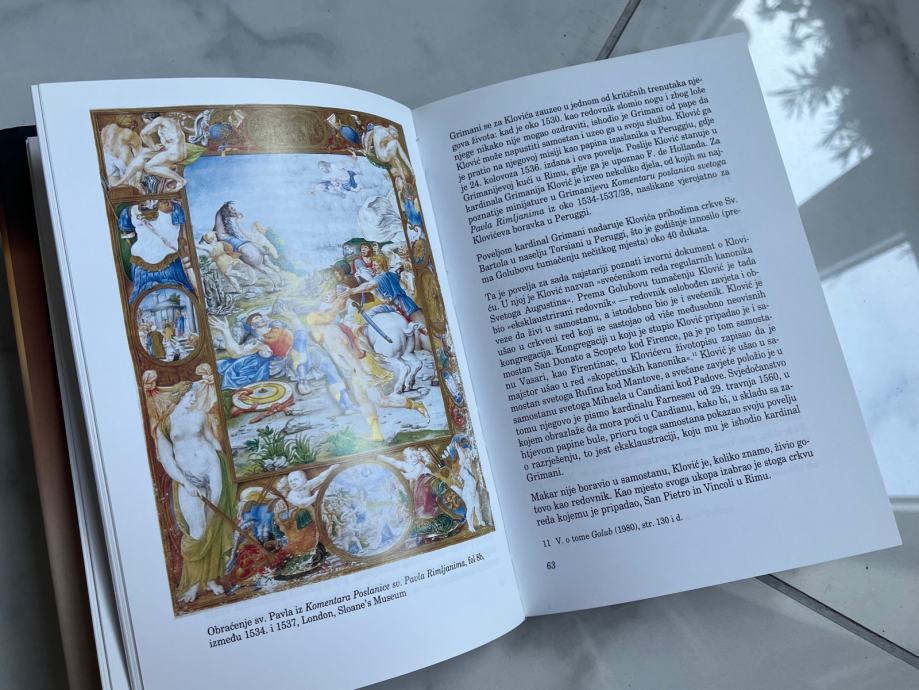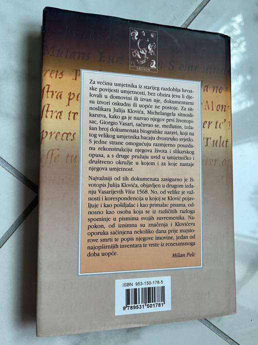 O Juliju Kloviću, Michelangelu sitnoslikarstva, kako ga je nazvao njegov prvi životopisac Giorgio Vasari, sačuvalo se dosta dokumenata biografske naravi. Ti dokumenti omogućuju razmjerno pouzdanu rekonstrukciju njegova života i slikarskog opusa. Klović pripada krugu najuglednijih umjetnika 16. stoljeća, druži se i radi s prvacima manirističkog razdoblja renesanse kao što su El Greco (koji ga i portretira), Peter Brueghel, Giorgio Vasari i drugi. Ovo je zbirka dokumenata i zapisa o velikom hrvatskom minijaturisti redovniku čiji su mecene bili najpoznatiji talijanski kneževi i kardinali.