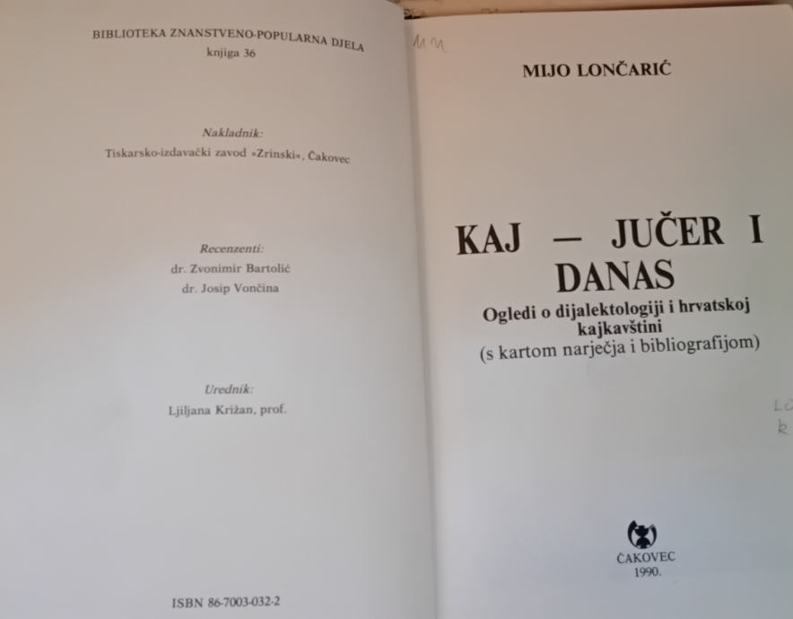 Prodajem knjigu „Kaj - jučer i danas: ogledi o dijalektologiji i hrvatskoj kajkavštini" s kartom narječja i bibliografijom, autor dr. sc. Mijo Lončarić istaknuti hrvatski jezikoslovac, dijalektolog, kajkavolog, kroatist i lingvist,