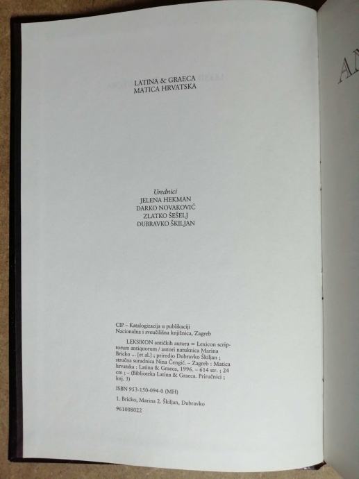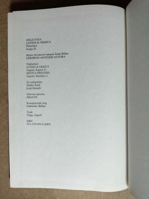 Nakladnik: Latina & Graeca, Matica hrvatska