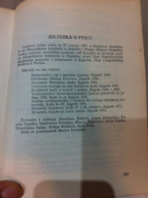 Lj. Jonke, Hrvatski književni jezik 19. i 20.st., 1971.