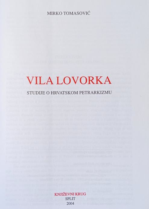 Mirko Tomasović: Vila Lovorka.Studije o hrvatskom petrarkizmu.