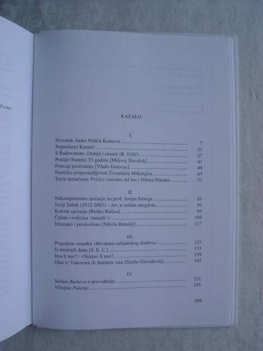 "Knjiga je kolaž različitih tumačenja književnih opusa i specifičnih identitetskih pitanja, te kao takva izuzetan prinos hrvatskoj književnoj historiografiji. Autor se bavi značajnim figurama hrvatske pretežno avangardne književnosti (Kamov, Ivšić, Gotovac, Slaviček, Mrkonjić i Petrak), te ih ulančava u pripadni europski kontekst. Zatim ispisuje studije koje nam tumače razne aspekte nekih od protagonista naše kulture i književne znanosti (Čale, Jernej, Tabak, Rašica, Batušić). Potom svjedoči o vremenima Domovinskog rata i teškoćama prodora istine o Hrvatskoj u svijet (s posebnim osvrtom na evokaciju Siniše Glavaševića). Premda svi razmatrani likovi i slučajevi nisu podjednako važni neosporno je da Machiedove interpretacije Kamova, Ivšića, Gotovca, Čale, Tabaka i Mrkonjića imaju iznimno relevantnu težinu i znače vrijedan prinos njihovu tumačenju i situiranju u stilske i vrijednosne parametre.