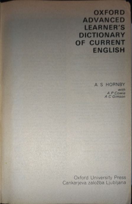 Oxford Advanced Learner's Dictionary of Current English - AS Hornby - Oxford Cankarjeva založba - Ljubljana