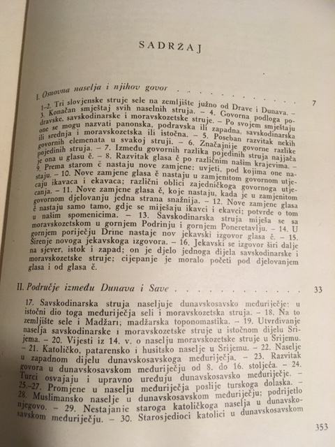Iz sadržaja knjige: Osnovna naselja i njihovi govori, Područje između Dunava i Save, Područje oko donjeg Binja i zapadnog kraka Bosutova, Područje između Vuke i donje Drave