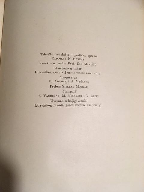 Izdavač i godina: JAZU, Zagreb, 1953.