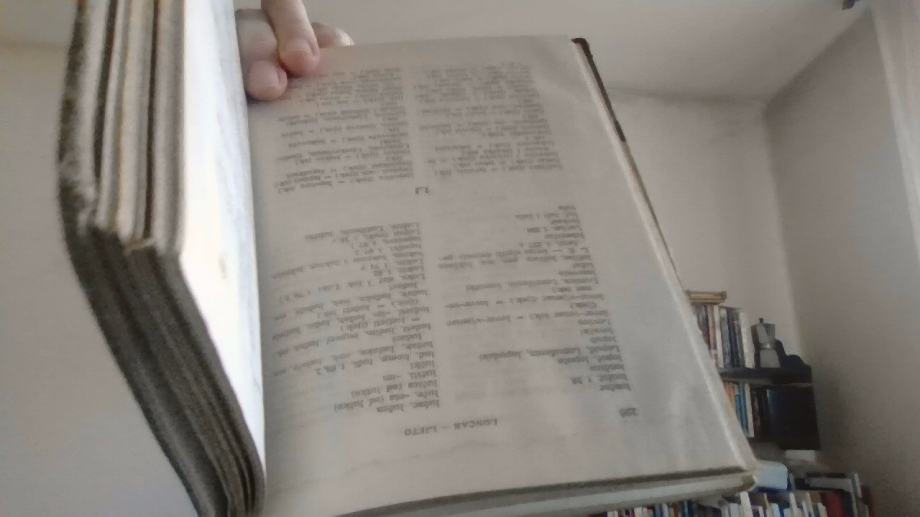 KORICE IMAJU OŠTEĆENJA I MRLJE OD VLAGE, NATPIS NA STRAŽNJOJ KORICI, POTPIS BIVŠE VLASNICE UNUTAR KNJIGE, MRLJE PRI RUBOVIMA STRANICA, DIJELOVI NEKIH STRANICA IMAJU MRLJE OD VLAGE I MALO SU NAMREŠKANI, NEKOLIKO NATPISA OBIČNOM OLOVKOM UNUTAR KNJIGE