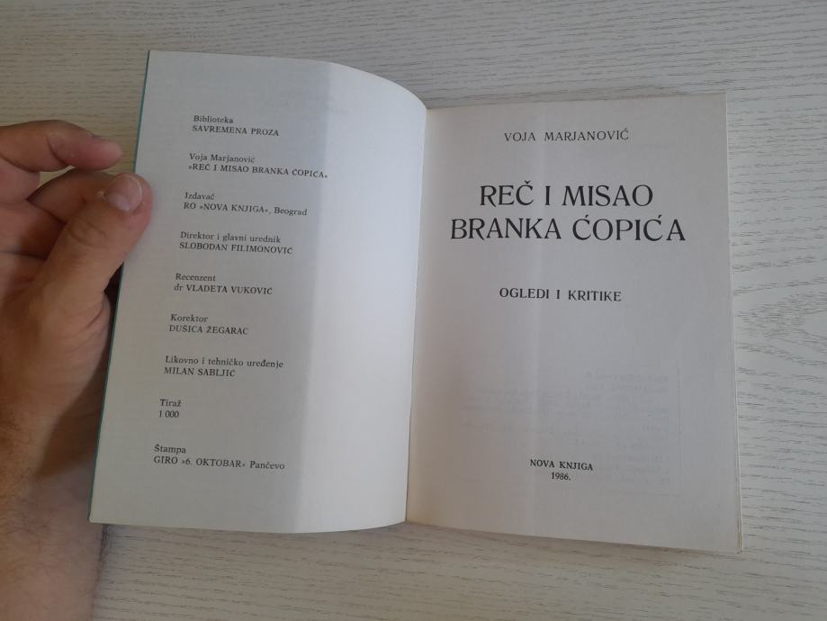 Voja Marjanović-Reč i misao Branka Čopića/Ogledi i kritike (1986.)