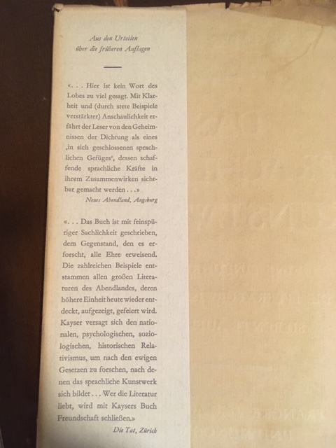Wolfgang Kayser, Das Sprachliche Kunstwerk, 1961. njem.