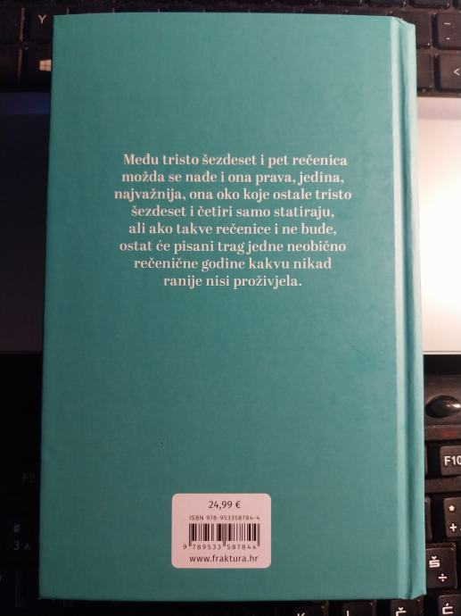 ".....Među tristo šezdeset i pet rečenica možda se nađe i ona prava, jedina, najvažnija, ona oko koje ostale tristo šezdeset i četiri samo statiraju, ali ako takve rečenice i ne bude, ostat će pisani trag jedne neobično rečenične godine kakvu nikad ranije nisi proživjela...."