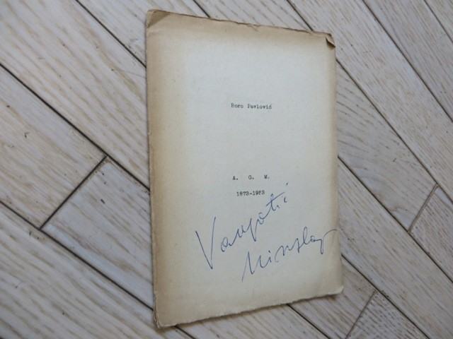 Boro Pavlović: A.G.M. 1873-1953 Stranica: 24Dimenzije: 12.5x18Jezik: ZagrebPismo: LatinicaStanje: DobroUvez: Meki