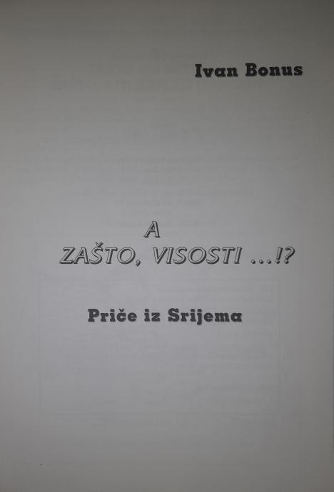 A ZAŠTO VISOSTI...!?Priče iz Srijema