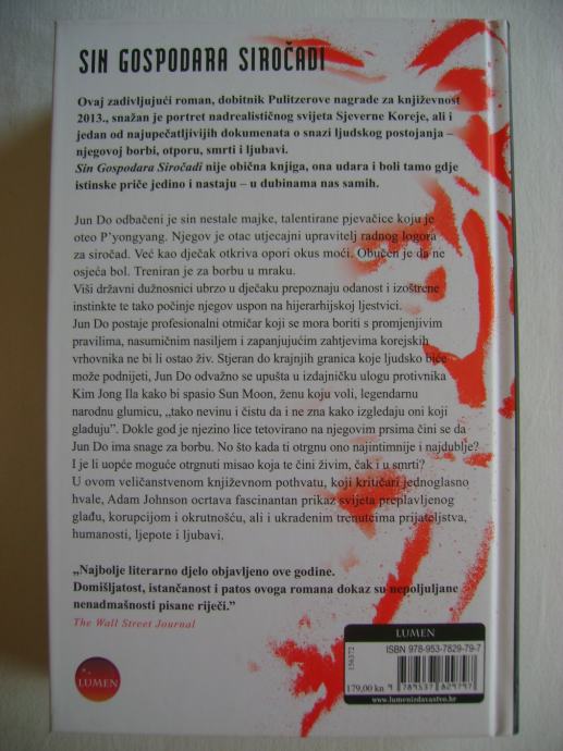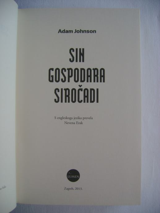 Adam Johnson - Sin gospodara siročadi - izdavač Lumen izdavaštvo, Zagreb 2013. godine, 16 x 24 cm, tvrdi uvez, 519 stranica.