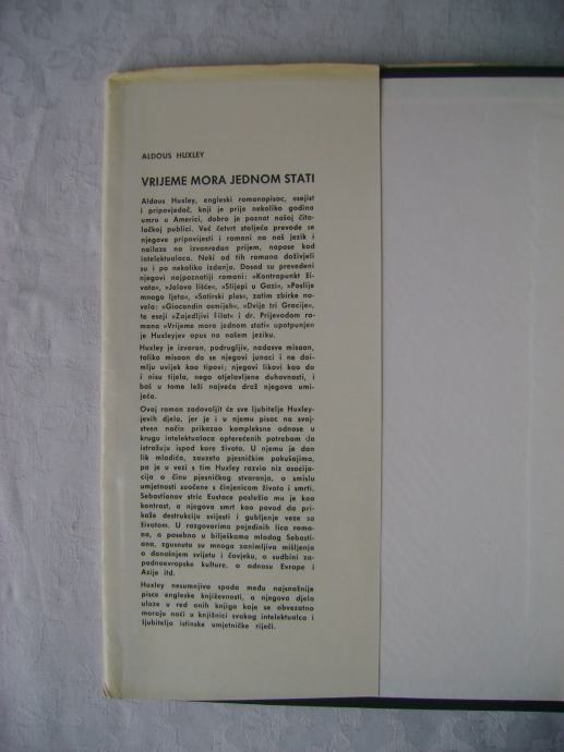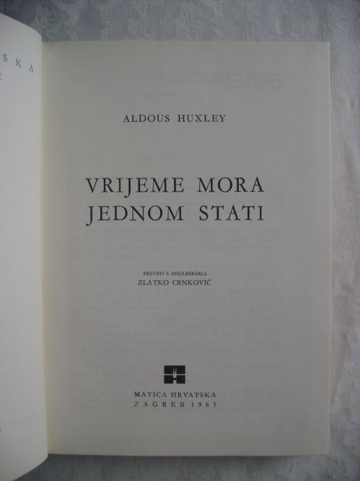 Aldous Huxley - Vrijeme mora jednom stati - izdavač Matica hrvatska, Zagreb 1965. godine, 15 x 20 cm, tvrdi uvez i papirnati omot, 290 stranica.