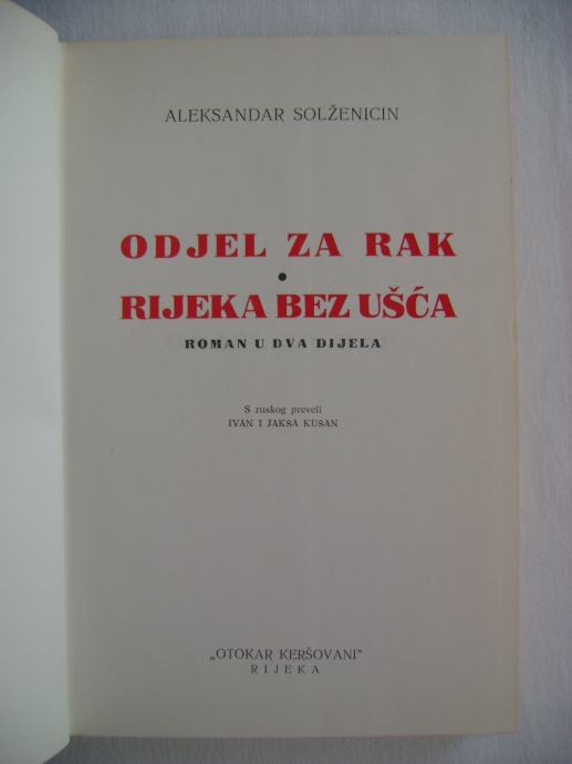 Aleksandar Solženicin - Odjel za rak / Rijeka bez ušća - izdavač Otokar Keršovani, Rijeka 1973. godine, 17 x 24 cm, tvrdi uvez i papirnati omot, 387 stranica.
