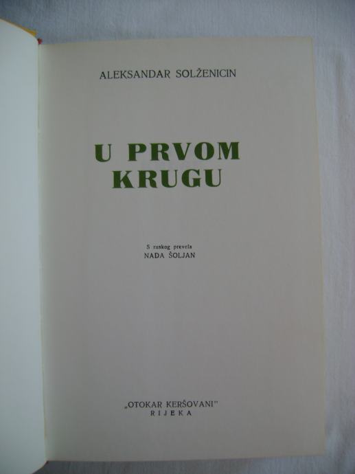 Aleksandar Solženicin - U prvom krugu - izdavač Otokar Keršovani, Rijeka 1969. godine, 17 x 25 cm, tvrdi uvez, nedostaje vanjski omot, 554 stranice.