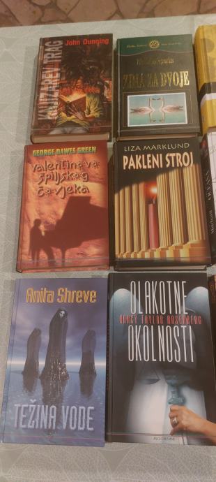 Sve su knjige tvrdi uvez i uglavnom su sve prva izdanja.Ciste su bez posvete, jedanput procitane i spremljene.