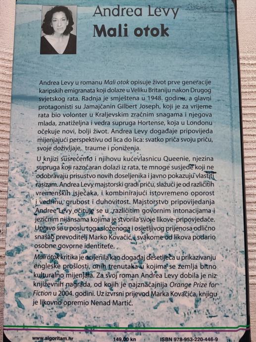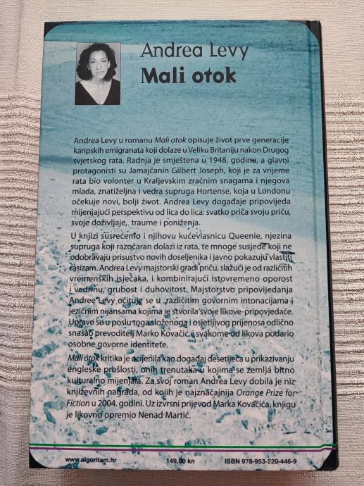 Andrea Levy u romanu «Mali otok» opisuje život prve generacije karipskih emigranata koji dolaze u Veliku Britaniju nakon Drugog svjetskog rata. Radnja je smještena u 1948. godinu, a glavni protagonisti su Jamajčanin Gilbert Joseph, koji je za vrijeme rata bio volonter u Kraljevskim zračnim snagama i njegova mlada, znatiželjna i vedra supruga Hortense, koja u Londonu očekuje novi, bolji život. Andrea Levy događaje pripovijeda mijenjajući perspektivu od lica do lica: svatko priča svoju priču, svoje doživljaje, traume i poniženja.