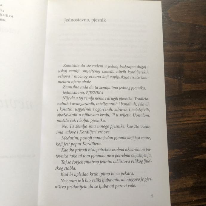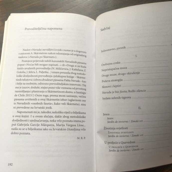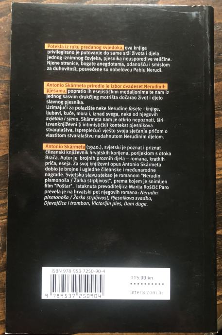 Antonio Skármeta priredio je izbor dvadeset Nerudinih pjesama, popratio ih esejističkim medaljonima te nam iz jednog sasvim drukčijeg motrišta dočarao život i djelo slavnog pjesnika.