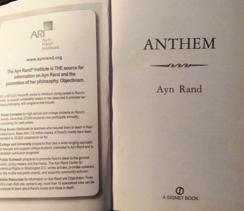 Anthem is a dystopian fiction novella by famous Russian–American writer Ayn Rand, written in 1937 and first published in 1938 in the United Kingdom.