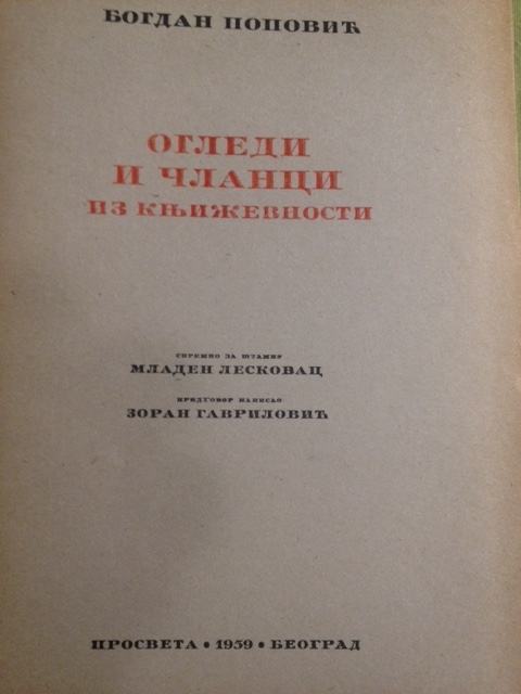 Bogdan Popović, Ogledi i članci iz književnosti (ćirilica)