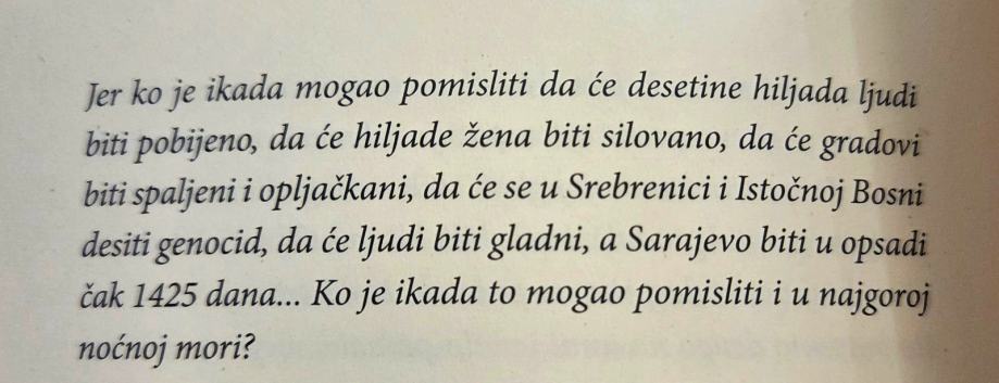 Emina Žuna majstorski nas vodi kroz Nedimovu traumu i njegov novi smisao života, pa ako treba i smisao smrti koja će spriječiti mnoge druge smrti koje su se u onoj bivšoj budućnosti dogodile. Sve ćemo joj povjerovati i na trenutak živjeti u njezinom boljem jučer za koje ćemo navijati kao da je doista ostvarivo – a vjerovat ćemo joj zato što vlada jezikom i pričom onako kako znaju samo pisci čiju fikciju doživljavamo kao da je prepisana iz naše stvarnosti, ili barem iz našeg kolektivnog boljeg jučer koje još nismo preboljeli.