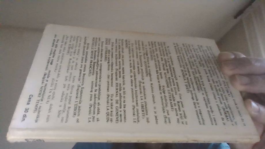 KORICE IMAJU OŠTEĆENJA I JAKO PUNO MRLJA, MRLJE PRI RUBOVIMA STRANICA I UNUTAR KNJIGE, NEKOLIKO POTPISA BIVŠEG VLASNIKA, NEŠTO POTCRTAVANJA OBIČNOM I KEMIJSKOM OLOVKOM, NEKOLIKO SE STRANICA ODVOJILO OD UVEZA PA SU LJEPLJENE TEKUĆIM LJEPILOM
