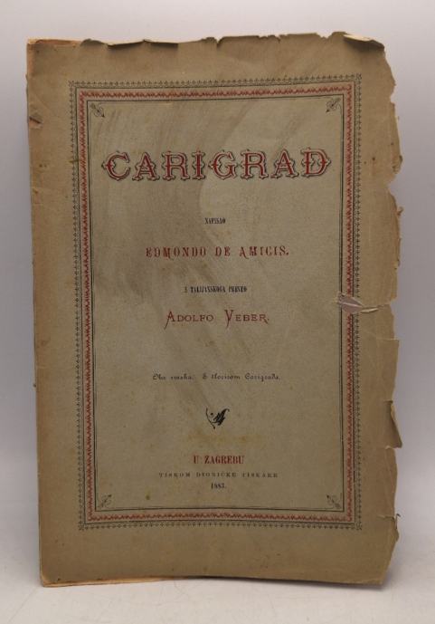Edmondo de Amicis: CarigradS talijanskog preveo Adolfo Veber Stranica: 225Dimenzije: 14.5x22Jezik: ZagrebPismo: LatinicaStanje: DobroUvez: MekiGodina: 1883