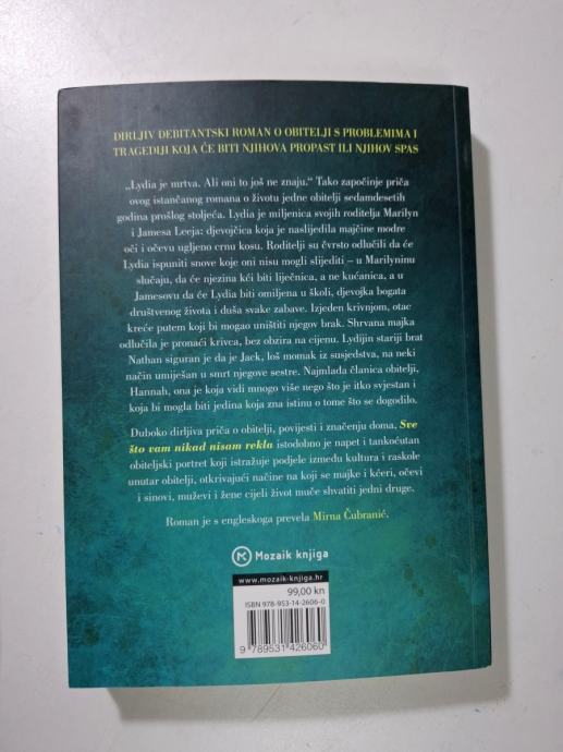 Celeste Ng. S engleskoga prevela Mirna Čubranić. Prijevod djela: Everything I never told you.