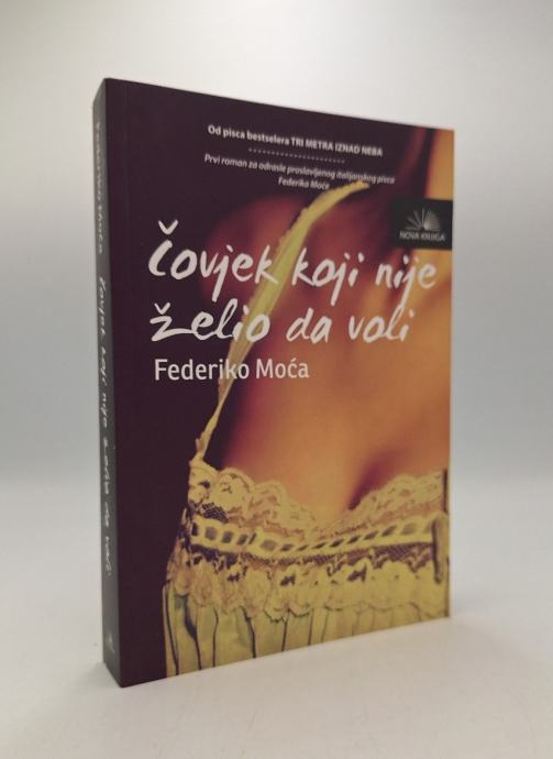 Federico Moccia: Čovjek koji nije želio da voliTancredi je čovjek iz snova: obdaren magnetskom privlačnošću, vlasnik otoka na Fidžiju i vila po cijelom svijetu, privatnog mlažnjaka. Svaka žena prije ili kasnije podlegne njegovom šarmu. Ali stara rana koja ga je zauvijek promijenila ne dopušta Tancrediju da voli. Barem dok ne upozna Sofiju, nadarenu pijanisticu koja je odustala od glazbe zbog zavjeta danog u ime ljubavi. Dovoljan je jedan pogled da Tancredi izgubi razum i postane opsjednut željom za Sophijom. No Sofia već ima ljubav svog života: on se zove Andrea i njezina je ljubav vječna. No može li ijedna žena odbaciti bezgraničnu strast koja joj je iznenada preokrenula život naglavačke i natjerala je da preispita sva svoja uvjerenja?Dvije izgubljene duše, jedna strastvena ljubavna priča puna želja, jedan napeti roman pun osjećaja koji označava novi korak za autora koji je svojim prijašnjim djelima osvojio milijune čitatelja diljem svijeta.Stranica: 340Dimenzije: 14x20Jezik: PodgoricaPismo: LatinicaStanje: Nova knjigaUvez: MekiGodina: 2013