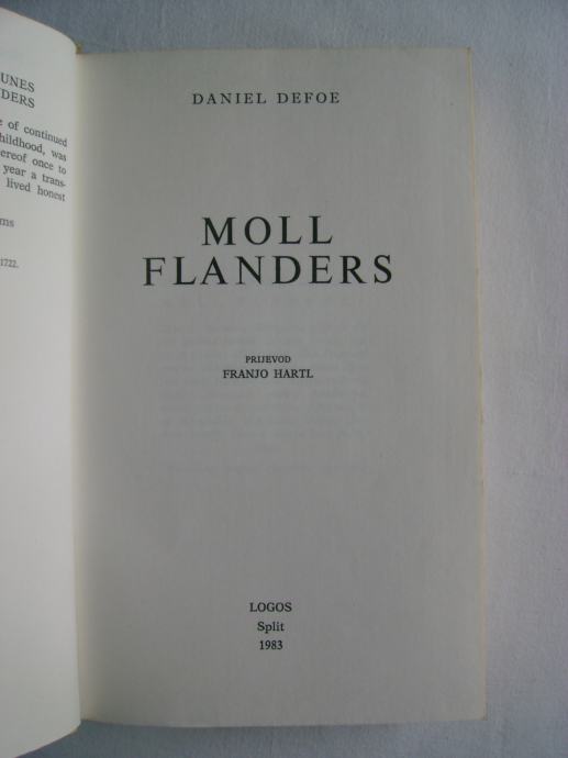 Daniel Defoe - Moll Flanders - izdavač Logos, Split 1983. godine, 12 x 20 cm, tvrdi uvez i papirnati omot, 377 stranica.
