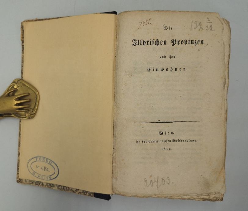 Die Illyrischen Provinzen und ihre EinwohnerIlirske pokrajine bile su autonomna pokrajina Francuske za vrijeme Prvog francuskog carstva, koja je postojala pod Napoleonovom vladavinom od 1809. do 1814. Regija je obuhvaćala današnju Hrvatsku, Sloveniju, Goricu i dijelove Austrije. Glavni grad je bila Ljubljana u blizini Slovenije. Sastojao se od šest departmana, što ga je činilo relativno velikim dijelom tadašnje Francuske. Dijelovi Hrvatske dijele se na civilnu i vojnu Hrvatsku. S obzirom da su dio velikog dijela Carstva, autor je osjetio dužnost i želju da napiše djelo kojim bi dočarao ilirski krajolik.Stranica: 579Dimenzije: 13×21Jezik: BečPismo: GoticaStanje: DobroUvez: TvrdiGodina: 1812