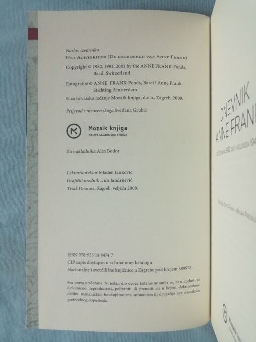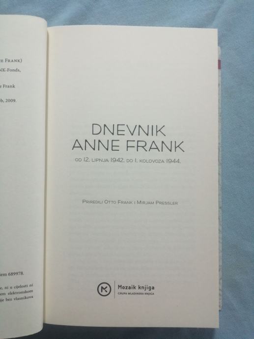 Dnevnik Anne Frank od 12. lipnja 1942. do 1. kolovoza 1944.