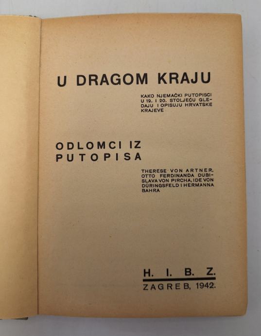 U dragom kraju. Odlomci iz putopisaKako njemački putopisci u 19. i 20. stoljeću gledaju i opisuju Hrvatsku. Stranica: 156Dimenzije: 14.5x19.5Jezik: ZagrebPismo: LatinicaStanje: Vrlo dobroUvez: TvrdiGodina: 1942