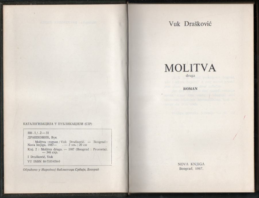 Drašković, Vuk - Molitva druga : roman