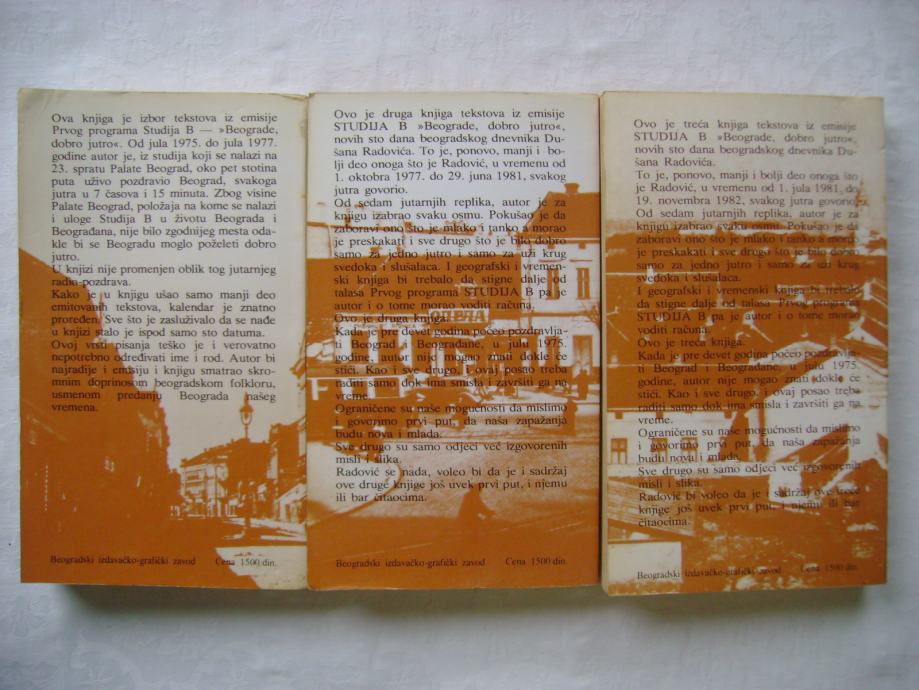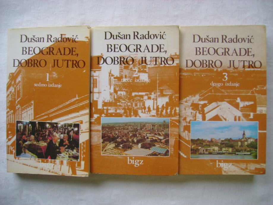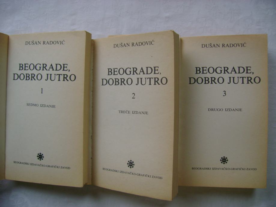 Dušan Radović - Beograde, dobro jutro 1-3 - izdavač BIGZ, Beograd 1987. godine, 10 x 18 cm, meki uvez, 207 + 207 + 205 stranica.