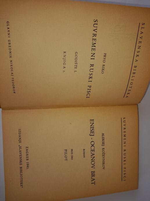 Roman Alekseja Koževnikova ,Enisej oceanov brat pilot tiskan 1941 u Zagrebu. Tvrdi uvez na 190 stranica u osrednjm stanju. Cijena 5 eura plus poštarina ili dogovor za Zagreb.