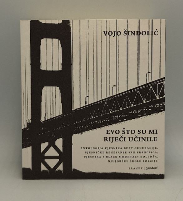 Vojo Šindolić: Evo što su mi riječi učinileU povijesti američke poezije u zadnjih sedamdeset i više godina nedvojbeno se izdvajaju četiri zasebne pjesničke grupe, ali koje se po svojim pjesničkim svojstvima, nazorima, eksperimentiranjima s jezikom itd., nerazdvojivo isprepliću, budući da su neki od pjesnika pripadali ne samo jednoj od spomenutih grupa nego istodobni bili i prijatelji, dijelili iste pjesničke vizije, objavljivali u istim časopisima i borili se za slična pjesnička postignuća.Povijesno gledano sve započinje sredinom četrdesetih godina dvadesetog stoljeća u New Yorku gdju su tada živjeli i stvarali Allen Ginsberg, Jack Kerouac, William S. Burroughs, Gregory Corso i drugi koji su izvorni članovi Pjesnika Beat generacije. Pedesetih godina na nekadašnjem Black Mountain koledžu (Sjeverna Carolina) okupljaju se, drže predavanja i književne večeri neki od velikana suvremene američke poezije: Charles Olson, Robert Duncan, Robert Creeley, Denise Levertov i drugi.Termin “Pjesnička renesansa San Francisca” označava neformalnu grupu pjesnika koji su tijekom pedesetih i šezdesetih, a potom i sedamdesetih i osamdesetih godina prošloga stoljeća živjeli u San Franciscu i njegovoj okolici, a kojoj su pripadali neki od najznačajnijih i najpoznatijih tadašnjih američkih pjesnika. “Njujorška škola poezije” zapravo je predstavljala neformalnu grupu pjesnika s kraja pedesetih i tijekom šezdesetih, a kojoj su pripadali neki od najpoznatijih pjesnika tog doba.Stranica: 440Dimenzije: 15x17Jezik: ZagrebPismo: LatinicaStanje: OdličnoUvez: MekiGodina: 2023