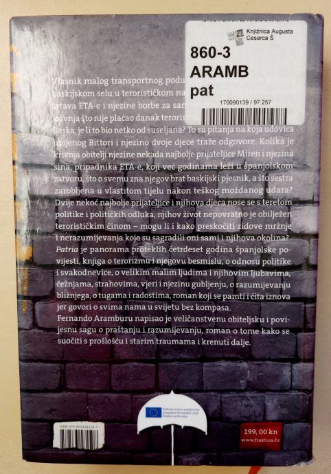 Patria je deveti Aramburuov roman te ujedno prvi preveden na hrvatski. Radnja se odvija u razdoblju od osamdesetih godina 20. stoljeća kad započinje djelovati baskijska teroristička organizacija ETA, pa do proglašenja obustave oružane borbe 2010. godine. Okosnicu čini razdor između dviju baskijskih obitelji i dviju prijateljica od kojih, spletom okolnosti, jedna postaje udovicom žrtve atentata ETA-e, a druga majkom pripadnika ETA-e.