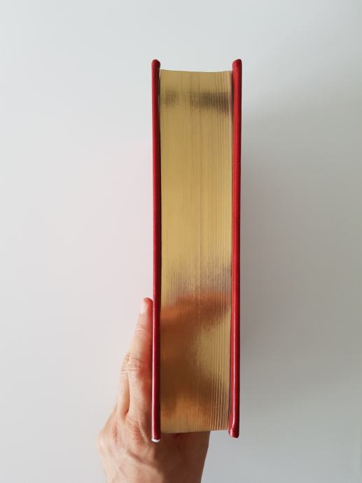 Korice knjige i pripadajuće kutije obložene su crvenom kožom i pozlaćene, rubovi stranica su također pozlaćeni, a knjiga je opremljena i ilustracijama na unutarnjoj strani korica, kartama svijeta romana, trakom za označavanje stranica te popisom obitelji s heraldikom na kraju knjige.