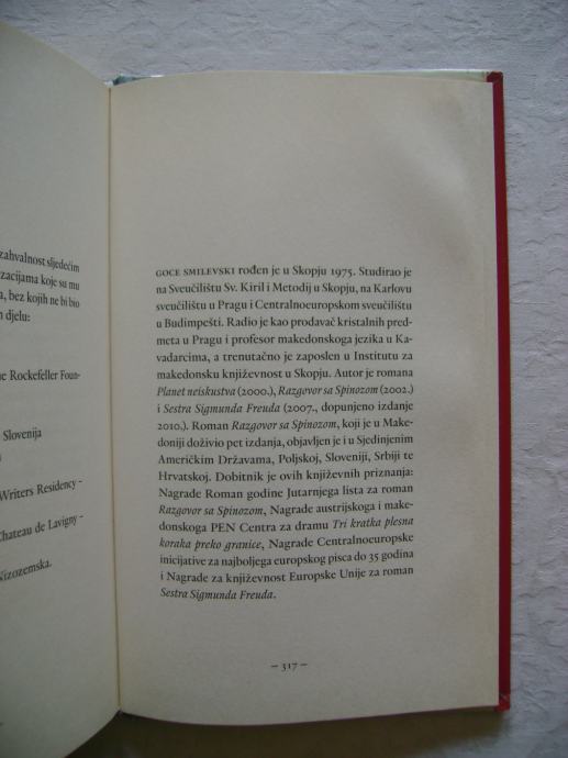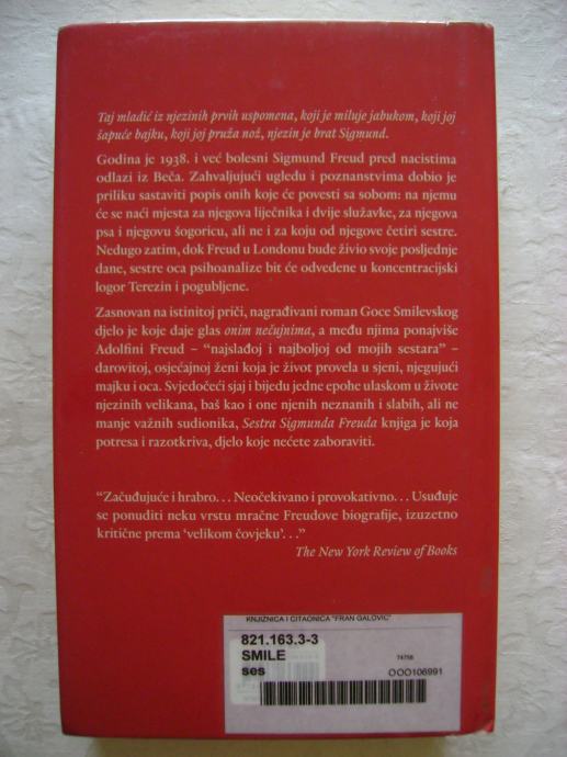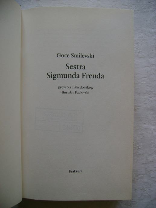 Goce Smilevski - Sestra Sigmunda Freuda - prvo izdanje, izdavač Fraktura, Zaprešić 2013. godine, 13 x 21 cm, tvrdi uvez i papirnati omot, 319 stranica.