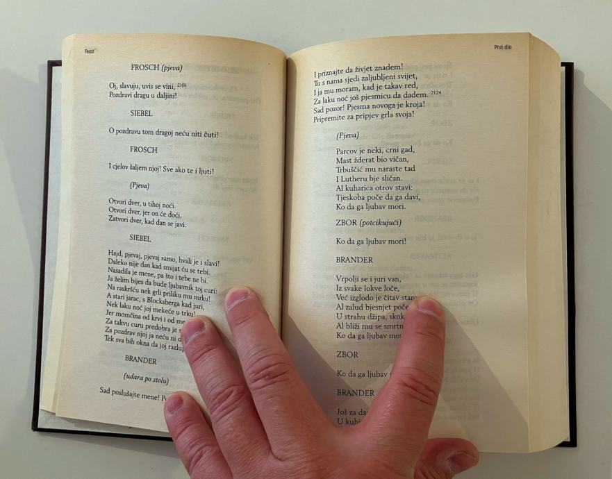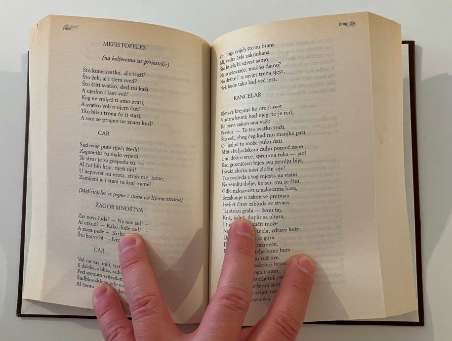 U središtu radnje stoji povijesni lik doktora Fausta koji u prvom dijelu drame skapa okladu s vragom, Mefistom, te se s njim upućuje u tzv. 'mali svijet' građanskog društva. U drugom dijelu putovanje se nastavlja u tzv. 'veliki svijet', politički svijet feudalnog društva, pri čemu se drama pretvara iz tragedije Fausta kao znanstvenika i ljubavnika (u prvom dijelu) u parabolu o čovječanstvu prikazanom u nizu scena iz antičkog svijeta i srednjega vijeka (u drugom dijelu), koje vrhune u Faustovu nastojanju da gradnjom ogromnih nasipa moru otme tlo te ga pretvori u plodnu "slobodnu zemlju za slobodni puk".