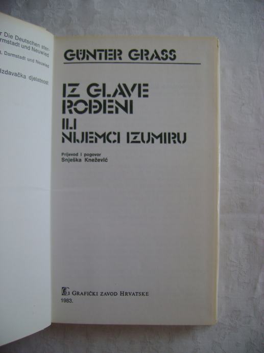 Gunter Grass - Iz glave rođeni ili Nijemci izumiru - izdavač Grafički zavod Hrvatske, Zagreb 1983. godine, 12 x 20 cm, tvrdi uvez i papirnati omot, 146 stranica.