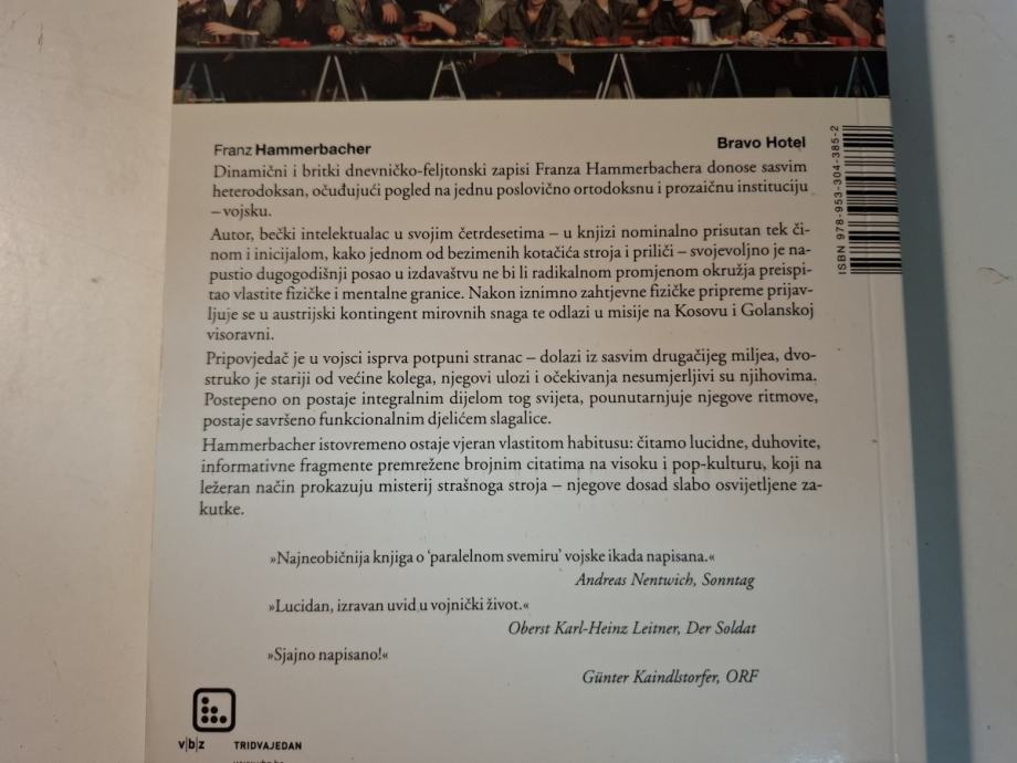 Svaka vojska je ista ma kako bila opremljena i ma gdje bila. Ipak, da bi se otkrile razlike u vremenu i prostoru, treba je doživjeti. Stoga je ovaj spis sjećanja i opservacija o vojsci i vojnom životu Franza Hammerbachera jedan od boljih doprinosa poznavanju vojnog života, vojske, terena. Pisac, bečki intelektualac, boravio je dragovoljno u mirovnim misijama međunarodnih kontingenata o kojima je izložio raznolike zapažaje, ali i osobni stav o služenju i vojni posebice. Nerijetko duhovit i autentičan promatrač vojnog života.