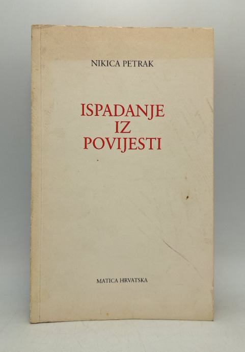 Nikica Petrak: Ispadanje iz povijestiBibliofilsko izdanje tiskano u 333 numerirana primjerka. Naš primjerak je 13, potpis Nikice Petraka.Nagrada Fonda Miroslav KrležaOdavno nismo čuli tako bogato, polifono, znalački artikulirano izražene ritmičke i eufonijske mogućnosti našega jezika... Lijepo opremljen svezak vraća povjerenje u izdavačke ambicije, a antologijska vrijednost tekstova podiže kriterije objavljivanja jer nema dvojbe da je riječ o jednom od dometa desetljeća.Tonko Maroević, Slobodna DalmacijaNikica Petrak (Duga Resa, 1939), pjesnik, prevoditelj i esejist prema mišljenju kritičara pripada uskome krugu najznačajnijih suvremnih hrvatskih pjesnika, a njegovu zbirku Ispadanje iz povijesti kritičari stavljaju na sam vrh najboljih pjesničkih knjiga objavljenih u posljednjih dvadesetak godina. Ta je zbirka nastala kao pjesnički odgovor na ratnu situaciju, odgovor lišen propagandističkih stihova i jednostavnih istina ispisanih priprostim pjesničkim sredstvima. U obrazloženju Nagrade Fonda Miroslav Krleža navodi se da Petrak »odabire poziciju subjekta koji je opsjednut snažnim osjećajem 'ispadanja iz povijesti', senzibilnog motritelja koji je sposoban opservirati kompleksnost zbivanja, pa i izraziti svoj gnjev zbog destrukcije ljudskosti, ali kojega snažno obilježuje spoznaja vlastite nemoći da nešto bitno djelatno promijeni...«Stranica: 79Dimenzije: 14x23Jezik: ZagrebPismo: LatinicaStanje: OdličnoUvez: MekiGodina: 1996
