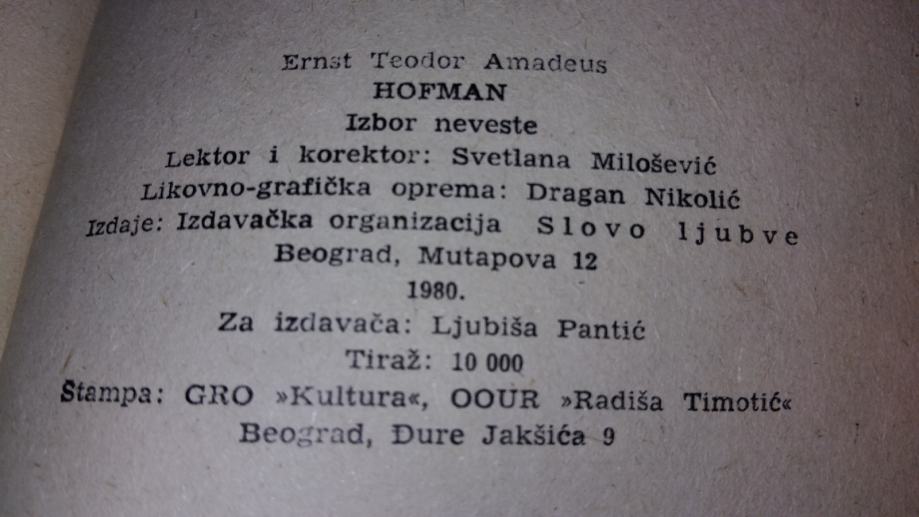 Izbor neveste, Ernst Teodor i Amadeus Hofman - 1980. godina, u odličnom stanju.