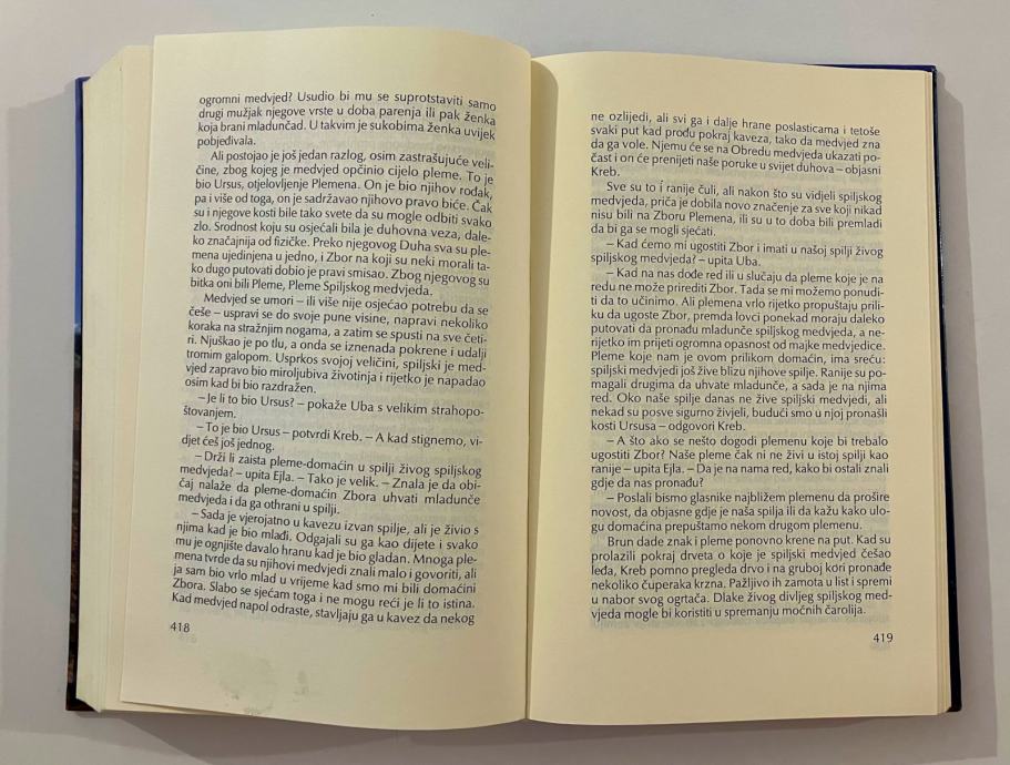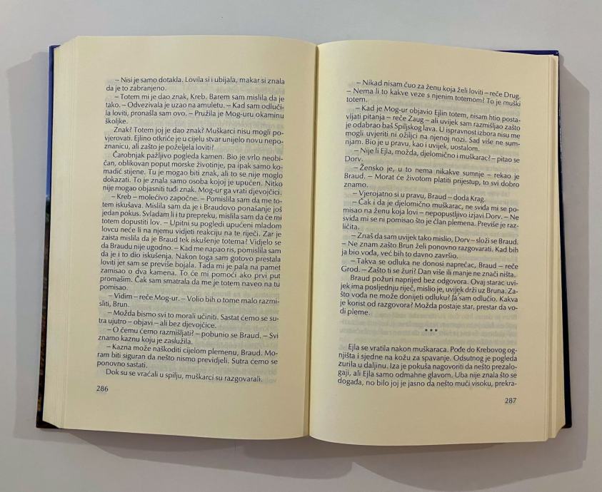 Knjiga koja nas vodi u pradavna vremena kamenoga doba, prije tridesetak tisuća godina. Roman o jednoj ženi u čijim je žilama kolalo sjeme budućih naraštaja. Nas danas. Djevojčicu Ejlu, pripadnicu kromanjonske rase, spasilo je i odgojilo neandertalsko pleme Ona je intelektualno naprednija od neandertalaca, ali u gruboj sredini tek mora izboriti prava i položaj koji joj pripadaju... Topla i uzbudljiva saga o Ejli postala je jedna od najpoznatijih priča našeg vremena. Nakon svjetskog uspjeha, autorica je nastavila pratiti život svojih junaka kroz nove nastavke.