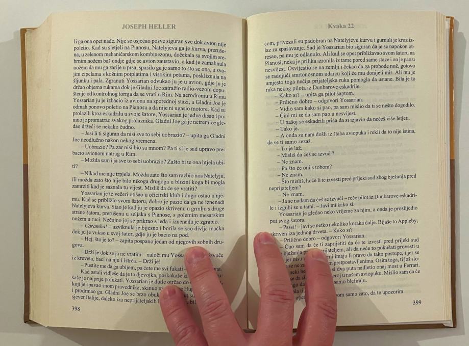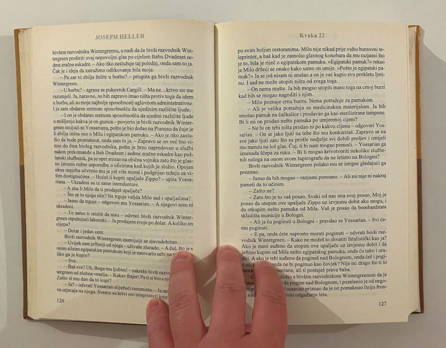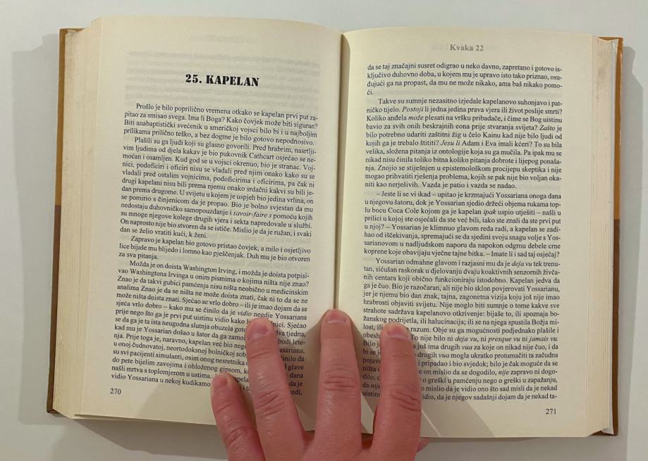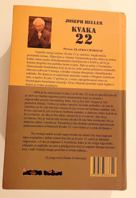 Vojnički strogo rečeno: Kvaka 22 je satirični, tragikomični proturatni roman. Objavljen u vrijeme Vijetnamskog rata, ubrzo je stekao kultni status među slobodoumnijim čitateljstvom u SAD-u, da bi ga kasnije prigrlila šira publika širom svijeta. Tako je priča o Yossarianu, članu posade bombardera koji se na sve mile načine pokušava osloboditi obveze letenja, u kratko vrijeme dosegnula višemilijunsku nakladu. Do danas je to najčitaniji američki roman o Drugom svjetskom ratu, a naslov Kvaka 22 postao je, i ostao, općeprihvaćeni izraz za frustrirajuće bezizlaznu situaciju. Ovaj vrhunski postulat vojne logike u knjizi je ovako objašnjen: "Bila je tu samo jedna kvaka, i to Kvaka 22, koja je specificirala da je skrb za vlastitu sigurnost pred opasnostima koje su stvarne i neposredne proces racionalnog duha. Ili e bio lud i mogao je biti pošteđen letenja. Trebao je jedino zatražiti da bude pošteđen, ali čim bi zatražio, ne bi više bio lud i morao bi još izvršavati borbene zadatke. Ili bi bio lud kad bi još izvršavao borbene zadatke, a duševno zdrav kad ih ne bi izvršavao, ali ako je bio zdrav, morao ih je izvršavati. Ako ih je izvršavao, bio je lud pa nije morao, ali ako ih nije htio izvršavati, bio je duševno zdrav i morao je. Vossarian je bio duboko potresen apsolutnom jednostavnošću te klauzule Kvake 22 i zazviždao je u znak divljenja." Na tvrdnje nekih svojih sugovornika da nikad više neće napisati tako originalan i dobar roman kao stoje Kvaka 22, autor je lakonski odgovorio: "A tko je napisao?"