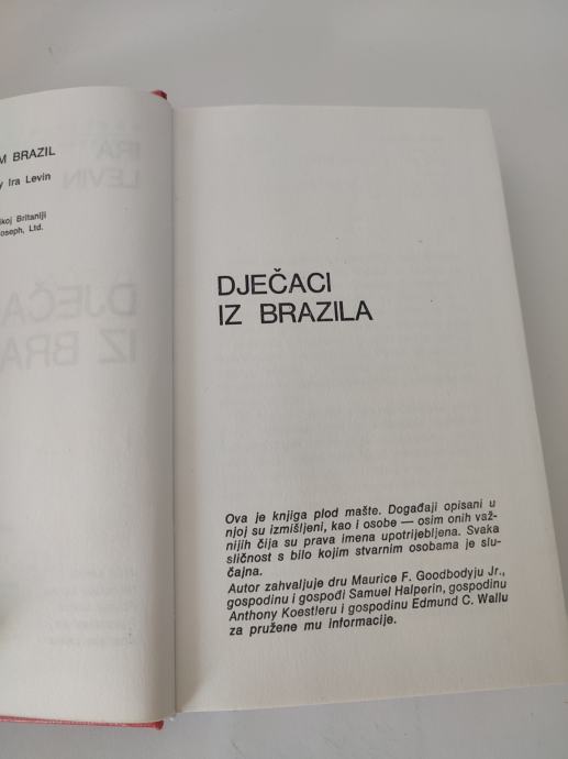 Ovo je roman o izmišljenim ali mogućim pokusima nacističkog liječnika Josefa Mengelea u laboratorijskom stvaranju naraštaja s psihofizičkim osobinama Adolfa Hitlera.