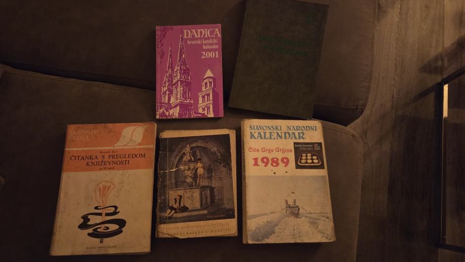 Prodajem knjige iz književnosti (drugi razred gimnazije iz 76', čitanka iz književnosti iz 68', slavonski narodni kalendar iz 89', nastavnički priručnik iz 2003, te hrvatski katolički kalendar iz 2001.)