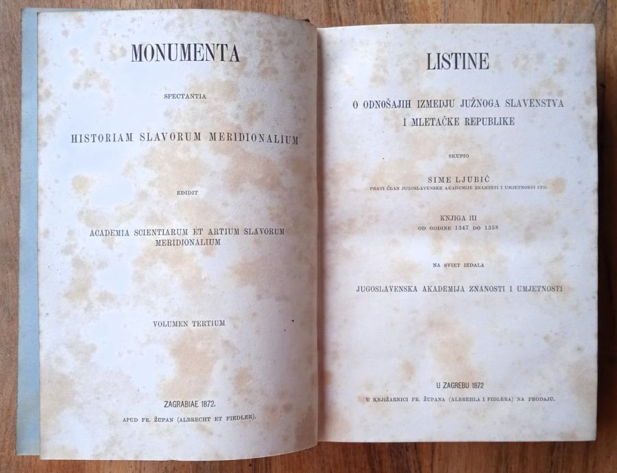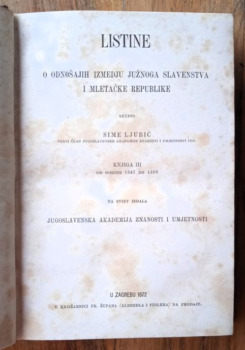 LISTINE O ODNOŠAJU IZMEDJU JUŽNIGA SLAVENSTVA I MLETAČKE 1872